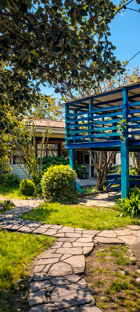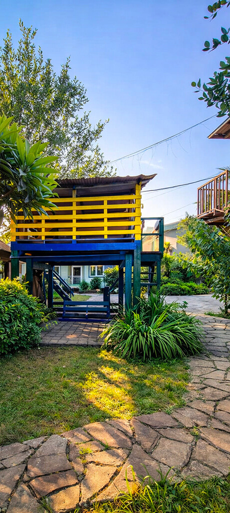 Дом расположен в прекрасном саду с экзотическими растениями и плодоносящими деревьями.